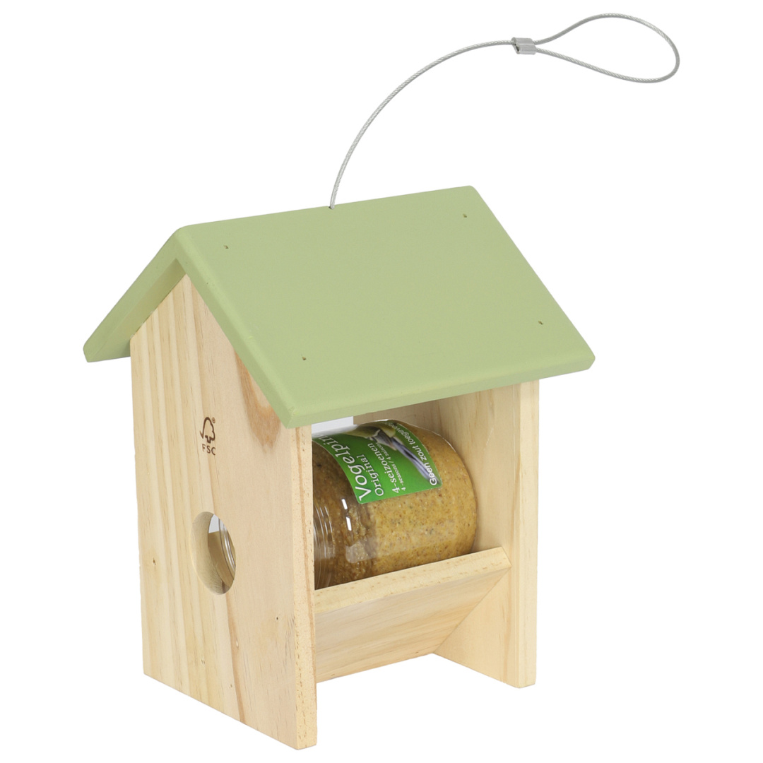 Trakteer de vogels in je tuin op een smakelijke verrassing met deze duurzame pindakaaspothouder van FSC-gecertificeerd hout. Dankzij het slimme ontwerp kunnen tuinvogels veilig en comfortabel genieten van hun favoriete pindakaas, terwijl jij zorgeloos toekijkt. Plaats de pot handig vanaf de zijkant in de houder en hij blijft moeiteloos op zijn plek zitten. En met het praktische ophangsysteem hang je de houder moeiteloos op aan een boom.