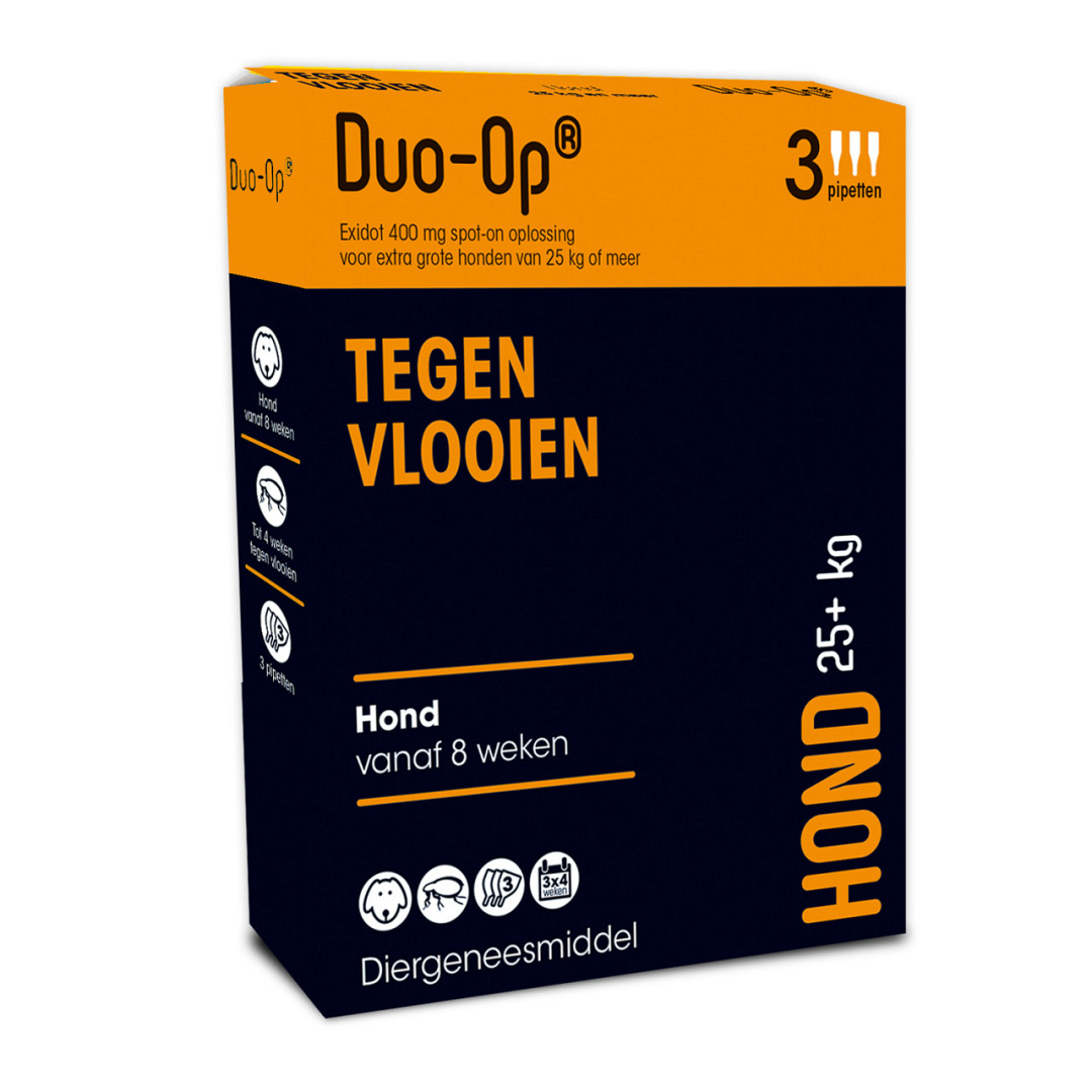 Wanneer er een vlooienplaag optreedt, is het altijd belangrijk dat je alle huisdieren in het huishouden tegelijk behandelt tegen vlooien. Heb jij een hond, kat en een konijn? Dan is Duo-Op een ideaal product waarmee je alle huisdieren in 1 keer kunt behandelen. Let uiteraard wel op dat je het juiste product voor elk huisdier koopt. Er zijn verschillende varianten voor hond, kat en konijn, verdeeld in gewichtsklassen.