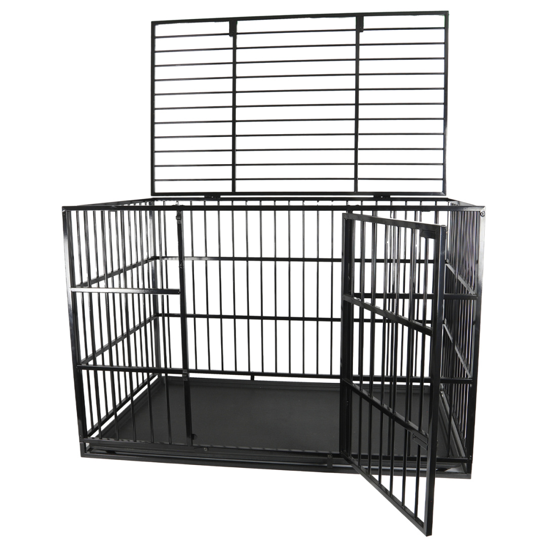 Zeer stevige hondenbench met deur en volledig te openen dak, zodat je altijd makkelijk bij je viervoeter kan.