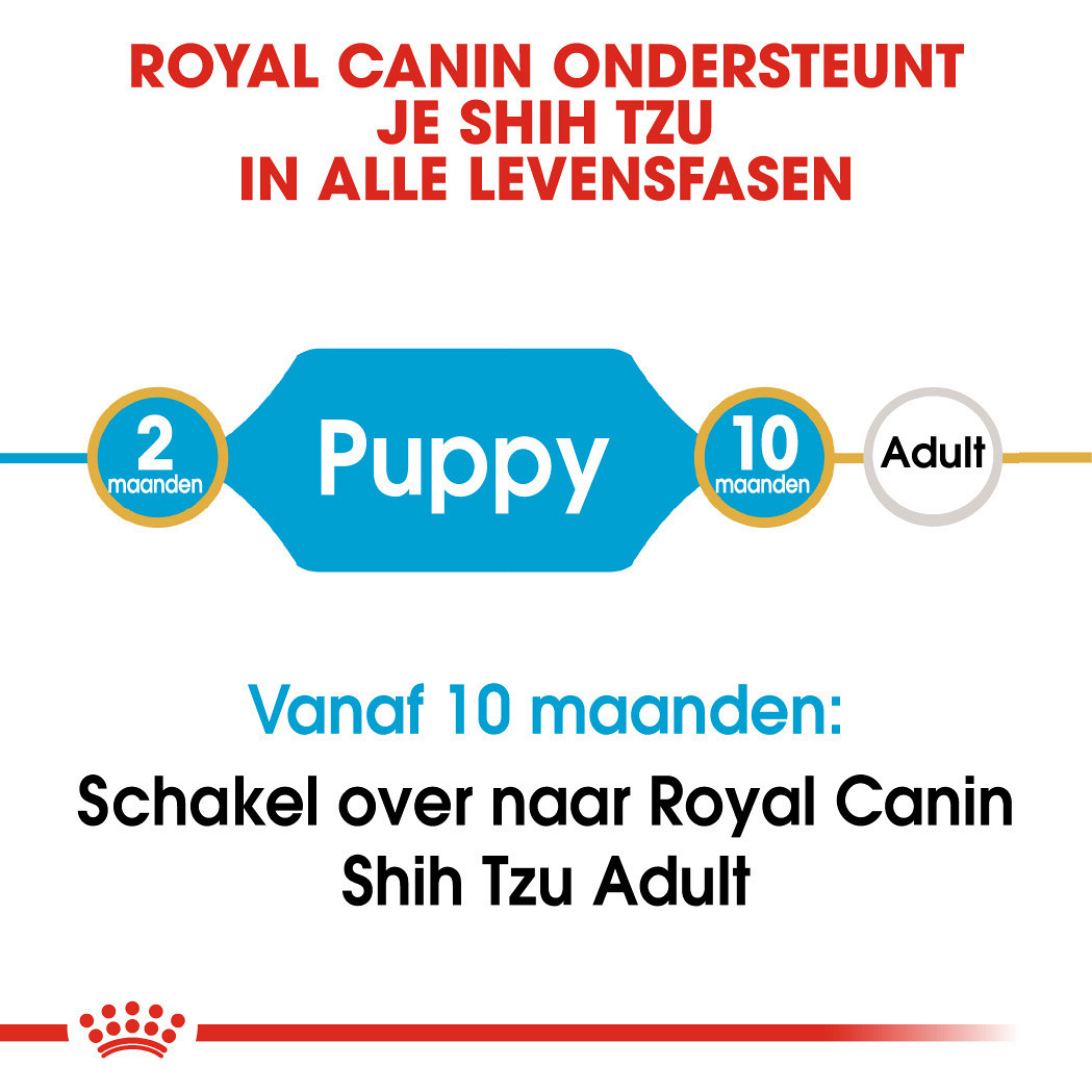 Je Shih Tzu pup gaat de komende 10 maanden een intensieve groeiperiode tegemoet. Met Royal Canin Shih Tzu Puppy help je je pup uitgroeien tot een levenslustige, lieve hond.