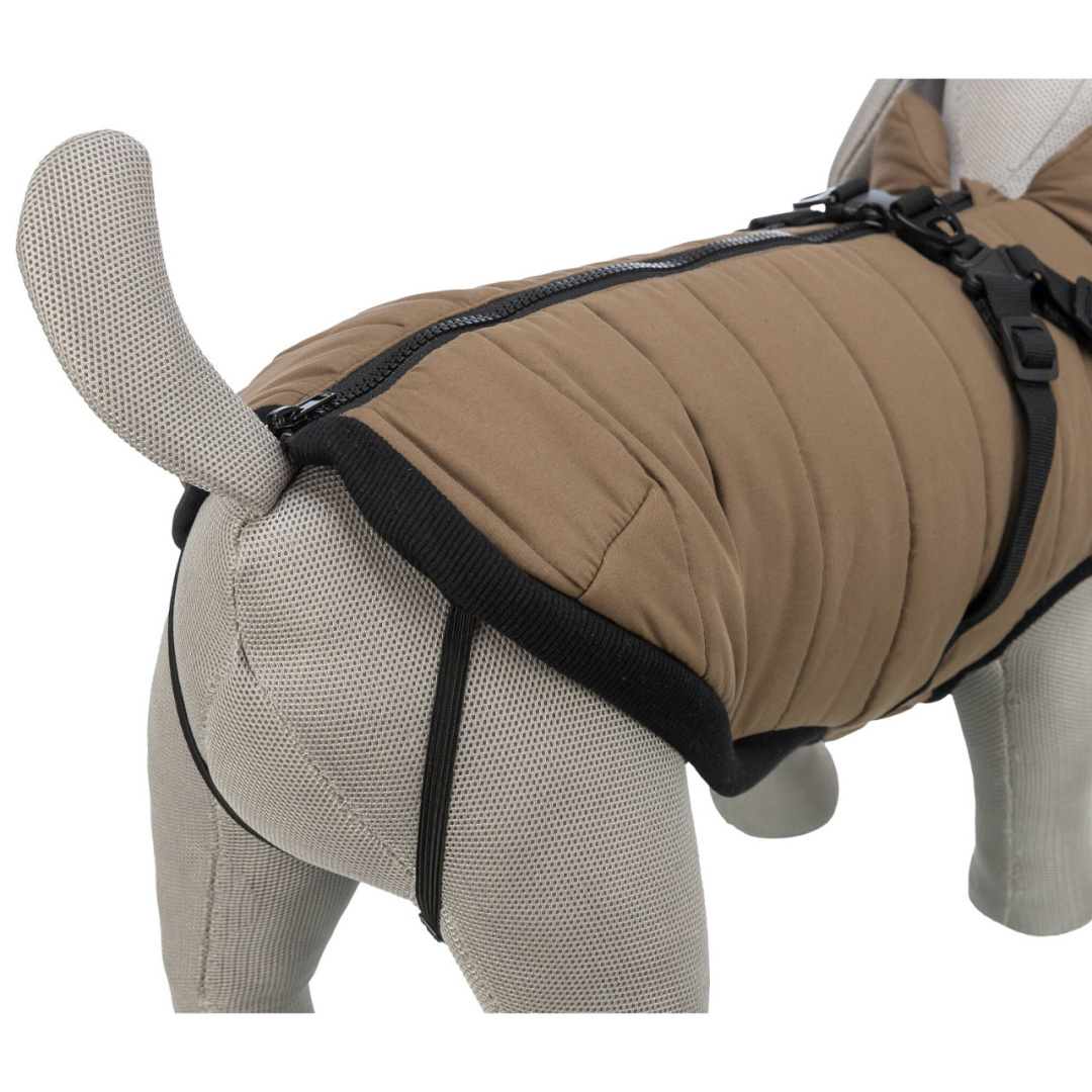 Comfortable, heerlijk warme hondenjas met geïntegreerd tuig om de lijn aan te bevestigen.