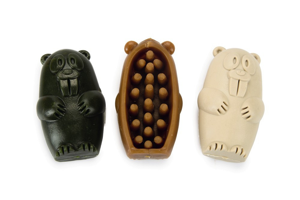 Plantaardige snack in de vorm van een bever. Helpt de tanden schoon te houden. Verkrijgbaar in 3 varianten. Variant niet vrij te kiezen.