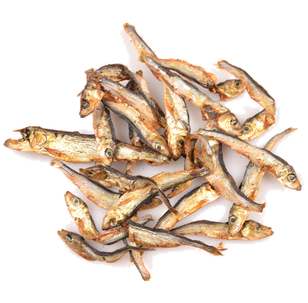 Krokante en 100% natuurlijke snack van gedroogde kleine visjes.