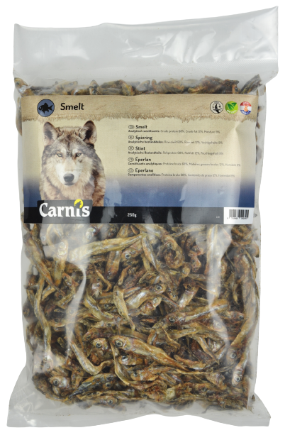 Carnis Spiering bestaat uit gedroogde kleine visjes. Deze 100% natuurlijke snacks zijn erg smakelijk en krokant.