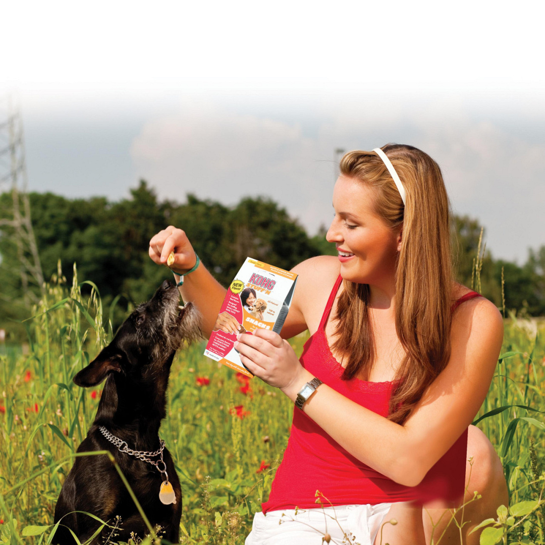 Deze verleidelijke koekjes kunnen op elk gewenst moment gegeven worden, maar zijn speciaal vormgegeven zodat ze in het Kongspeeltje van je hond passen.