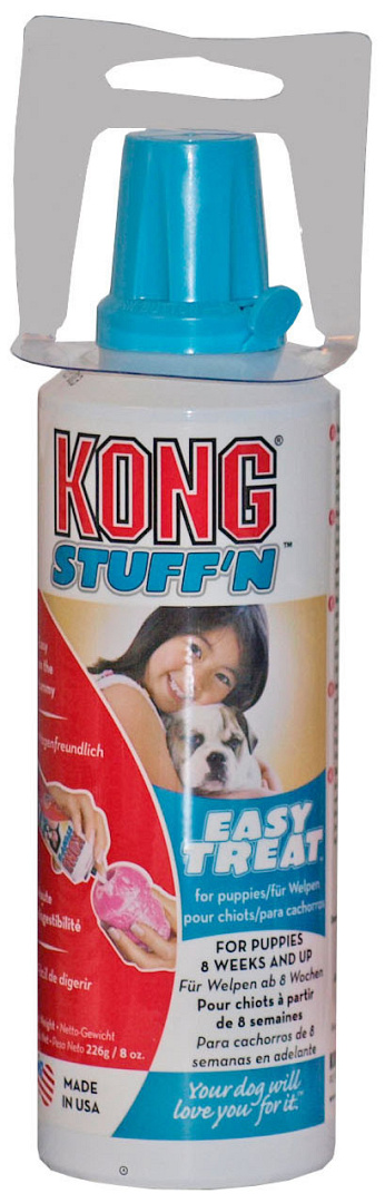 Kong Stuff’n Puppy Easy Treat spuitbus maakt het opvullen van Kong speeltjes eenvoudig. Breng de smakelijke pasta gewoon aan op de binnenkant van een Kong puppy-speeltje. De speciaal samengestelde kippenleversmaak is perfect voor de gevoelige maag van een puppy.