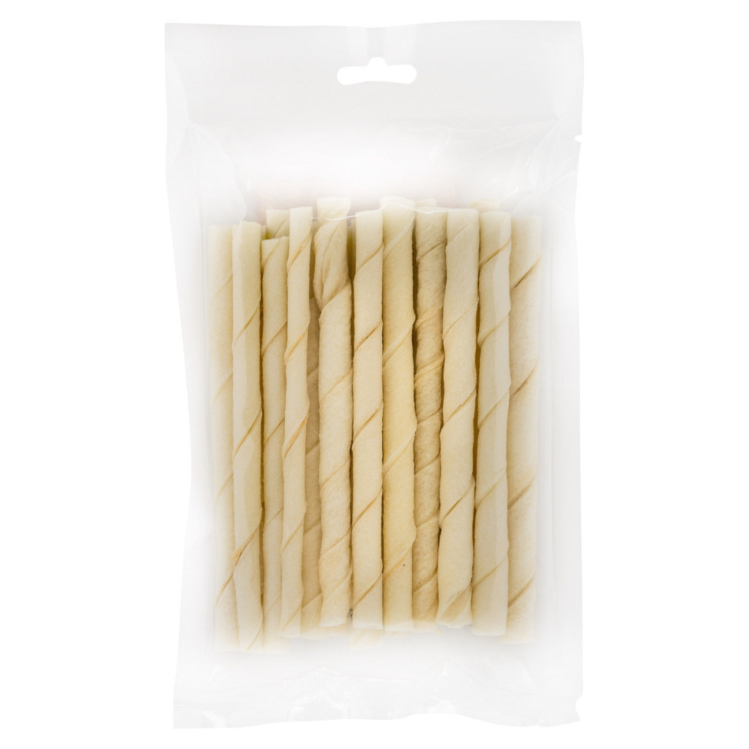 Landman Witte Gedraaide Staafjes zijn natuurlijke en glutenvrije hondensnacks van onderhuids bindweefsel van rund, geweekt in waterstofperoxide. Glutenvrij.