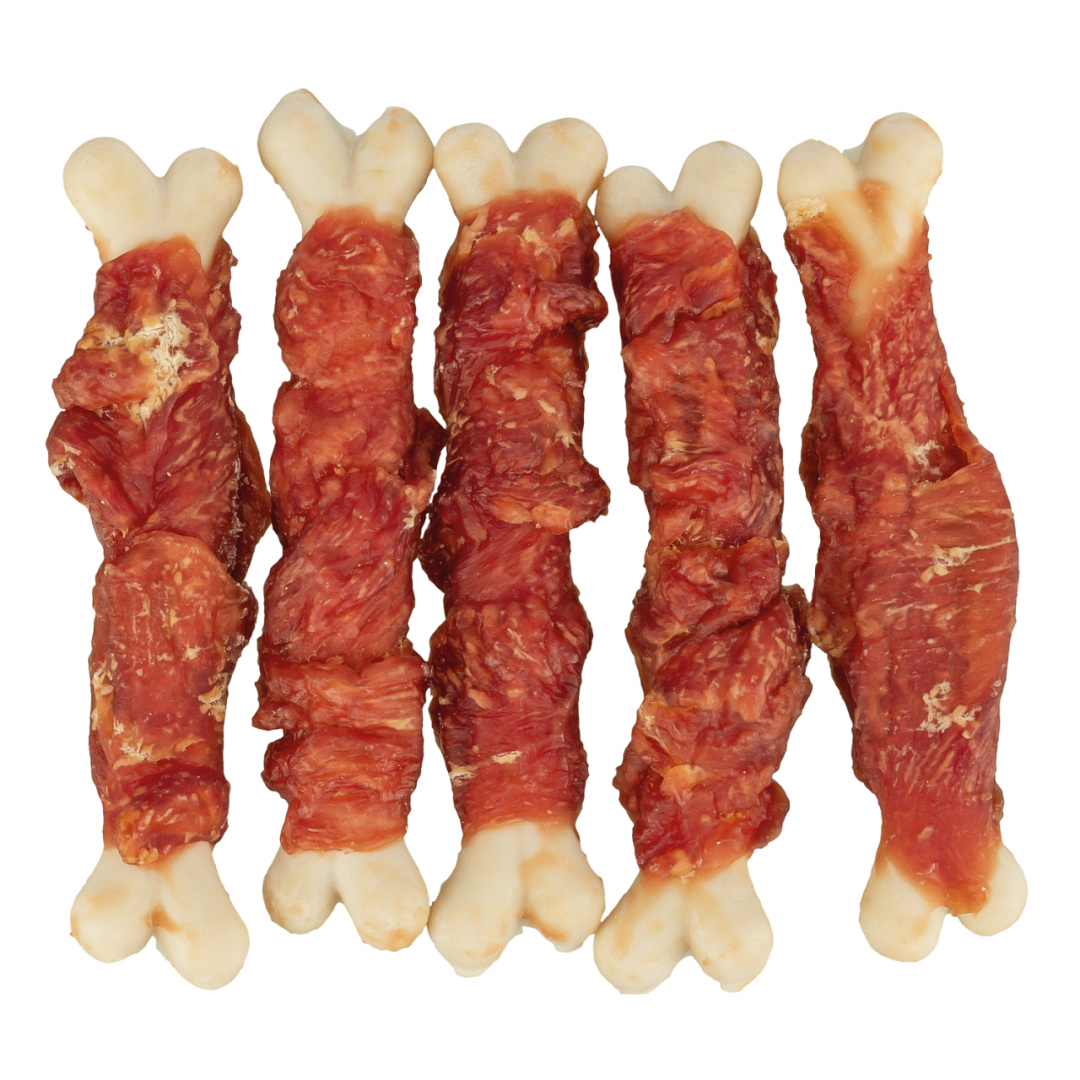 De Trixie kauwsnack Grand Ducky met eendenborst is een snackbot in een jasje van eendenborst.