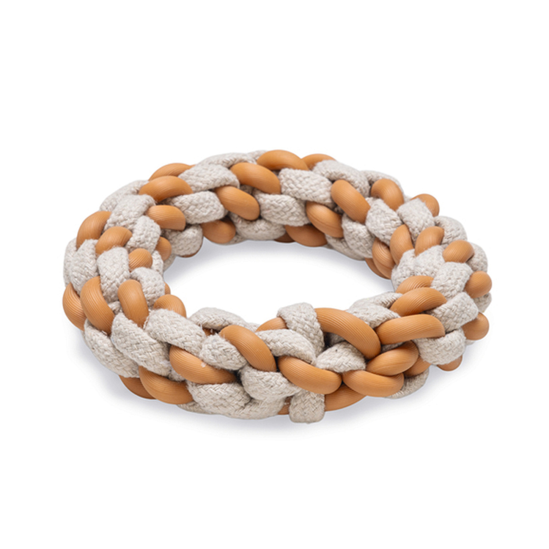 Met het Beeztees hondenspeeltje Puppy dental touwring Mik geef je jouw pup een geweldig hondenspeeltje dat niet alleen leuk is om mee te spelen, maar ook bijdraagt aan de mondverzorging. Dit hondenspeelgoed in de vorm van een ring is gemaakt van een combinatie van TPR (thermoplastisch rubber) en katoen. Hierdoor is het puppy speeltje ook elastisch wat zorgt voor een leuk effect tijdens het samen spelen. Deze puppy speelgoed ring is speciaal ontworpen om de tanden van jouw puppy te reinigen en het tandvlees te masseren tijdens het spelen. De zachte, maar stevige structuur stimuleert de kauwbehoefte van jouw pup en helpt bij het verlichten van ongemakken tijdens het wisselen van tanden.