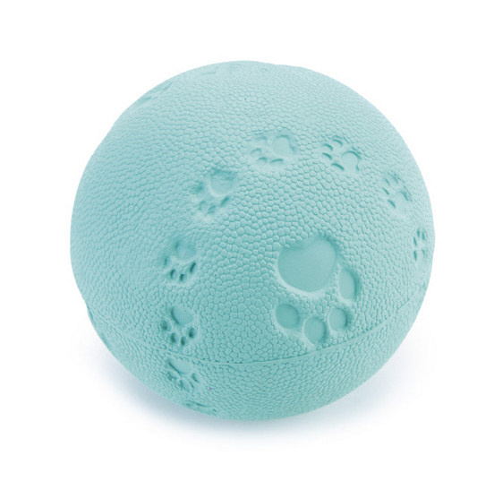 Leuke rubber speelbal met pootprint en piep.