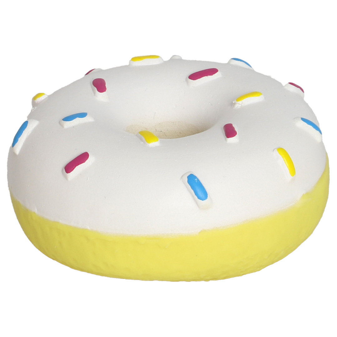 Dit vrolijke en unieke hondenspeeltje Donut is ontworpen om jouw hond te vermaken en om zijn smaakpapillen te prikkelen. Het water zal je trouwe voervoeter in de mond lopen bij het zien van dit unieke speeltje. Elke beet in deze donut zorgt voor een vrolijk piepgeluid dat jouw hond enthousiast maakt en aanmoedigt om te blijven spelen. Deze donut ziet er niet alleen superleuk uit, maar trekt ook direct de aandacht van je hond, waardoor hij er dol op zal zijn.