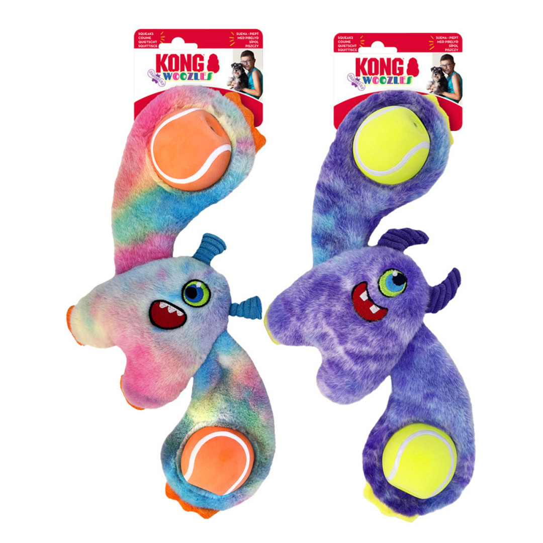 Ontdek de Kong Woozles Monsters! Dit schattige monster met zijn unieke half-bal armen brengt plezier naar een hoger niveau. Laat jouw hond lekker spelen en schudden. Deze knuffelvriend bevredigt zijn natuurlijke instincten. Met een pieper in elke bal maakt hij het spelletje nóg spannender! De zachte, dichte vacht nodigt uit tot knuffelen, terwijl je samen kunt genieten van urenlang speelplezier.