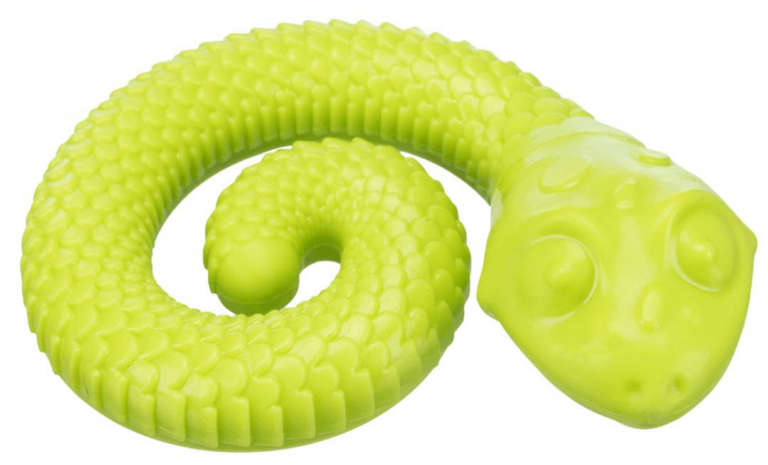 De TRIXIE Snackslang is een speeltje van thermoplastisch rubber (TPR) met een spleetvormige opening aan de onderkant. De slang kan gevuld worden met bijv. leverworst, snoepjes of koekjes.