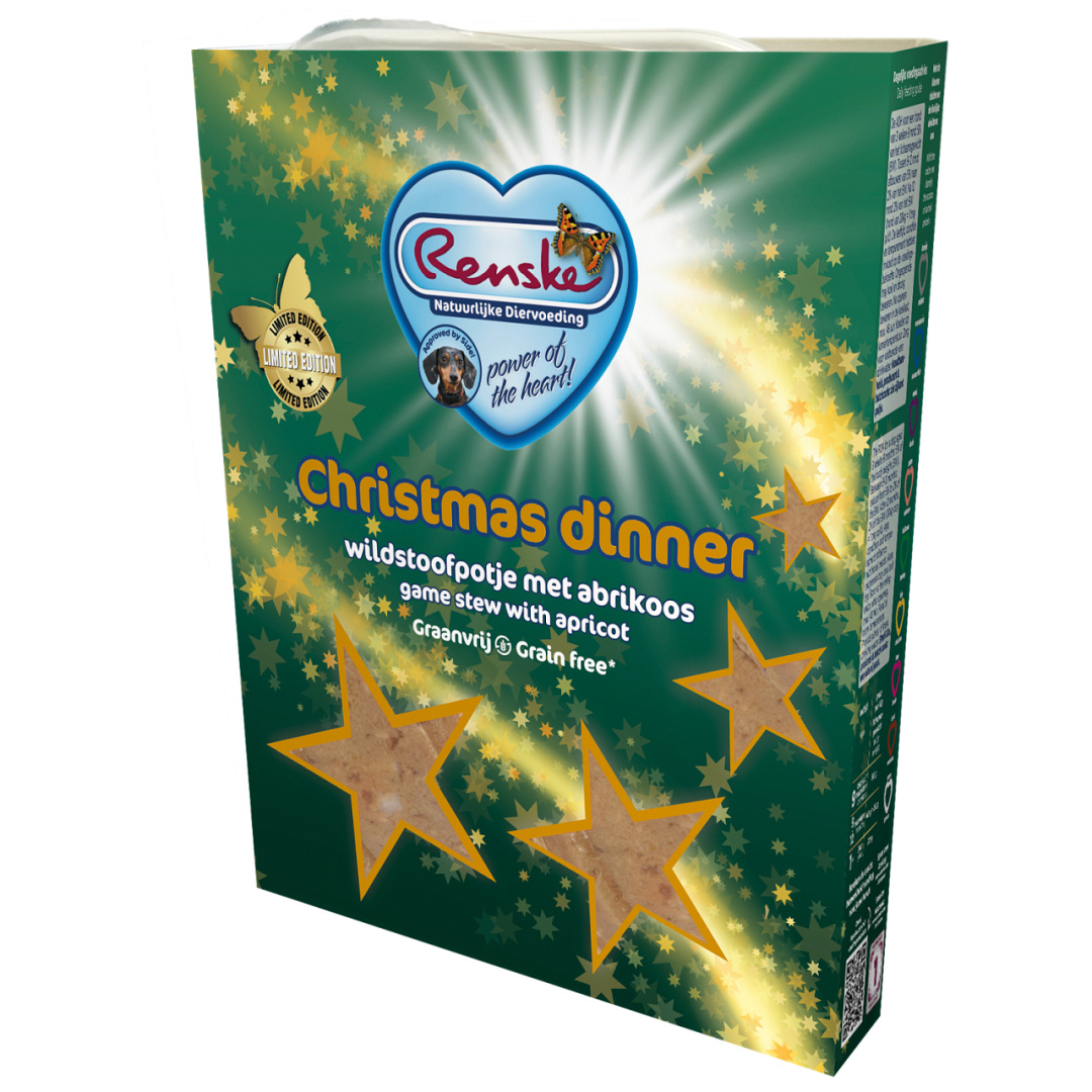 Renske Vers Vlees Maaltijd Kerstdiner met vers gestoomde eend en hert is een heerlijke verrassing voor de kerstdagen, voor jonge en volwassen honden van alle rassen vanaf 9 weken.