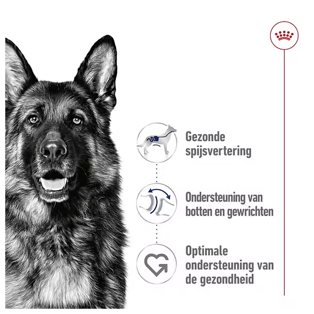 Deze voeding is ontwikkeld voor honden die tussen 26 en 44 kg wegen en ouder zijn dan 15 maanden. Bij grote honden duurt de spijsvertering langer, waardoor hun spijsvertering kwetsbaarder kan zijn dan die van kleine rassen. Deze voeding bevat zeer goed verteerbare eiwitten en een uitgebalanceerde hoeveelheid vezels om een goede spijsvertering te bevorderen. Bij grote honden rust het grootste deel van hun lichaamsgewicht op hun gewrichten. Deze formule is speciaal samengesteld met een combinatie van vitaminen en mineralen om de botten en gewrichten gezond te helpen houden.