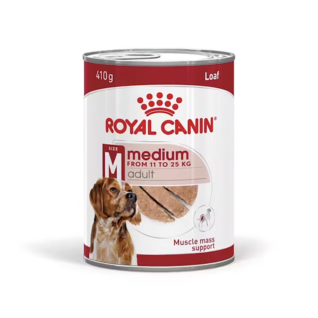 Royal Canin Medium Adult Loaf (paté) is een complete en uitgebalanceerde natvoeding die speciaal is ontwikkeld om te voldoen aan de specifieke behoeften van je middelgrote hond en hem op volwassen leeftijd te ondersteunen.