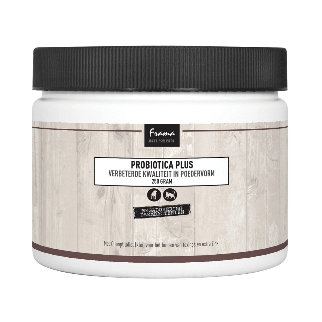Frama Best For Pets Probiotica Plus Poeder ondersteunt een goede darmwerking met goede darmbacteriën. Goede darmbacteriën zorgen voor een juiste zuurgraad in de darmen en dragen bij aan een goede voedselvertering door de productie van enzymen. Door toediening van hoog gedoseerd goede darmbacteriën worden slechte bacteriën tegen gewerkt. Hierdoor zullen de darmcellen in topconditie komen. Voedingsstoffen zullen beter opgenomen worden en de algemene conditie zal verbeteren.