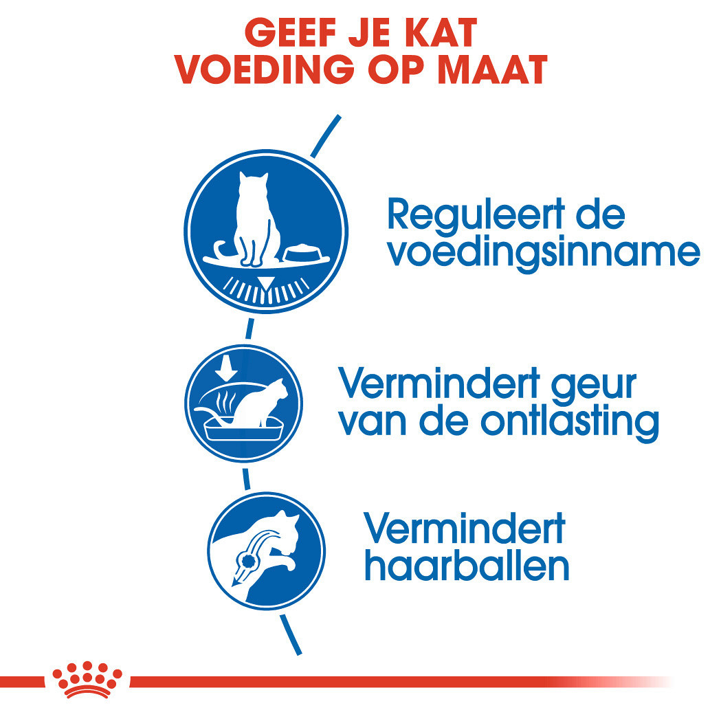 Complete voeding voor katten die binnenshuis leven en een ongeremde eetlust hebben. Draagt bij aan een gezond gewicht.