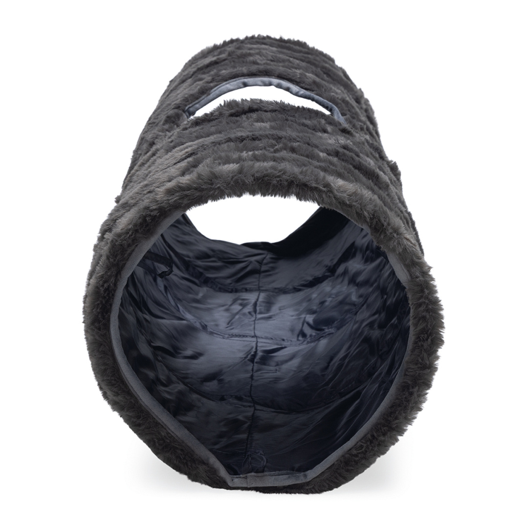 Kattentunnel van prachtige ribstof, met doorkijkgat halverwege voor extra speelplezier. Plat op te bergen.