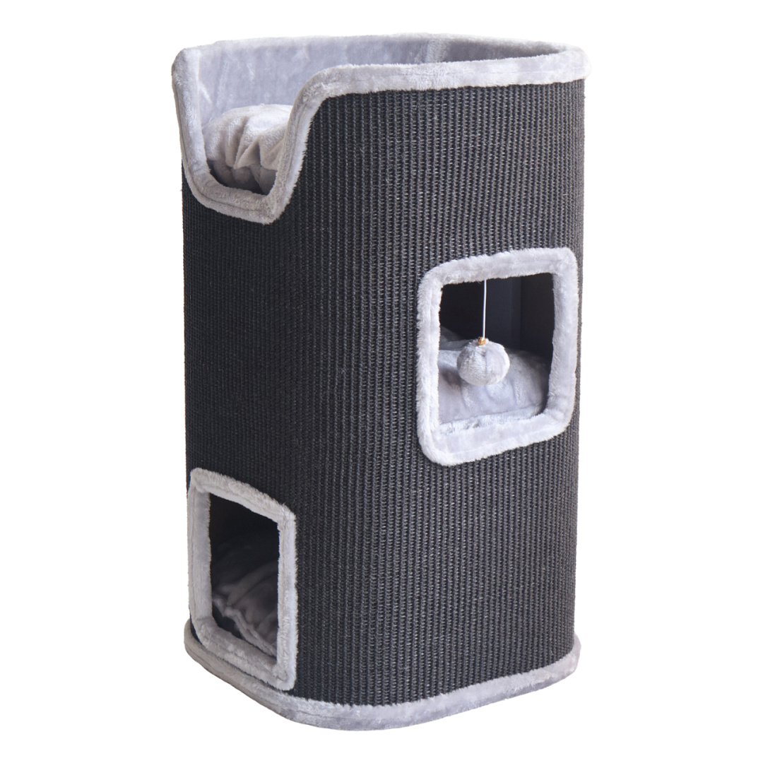 Deze krabtoren is de ideale combinatie tussen een krabgelegenheid en een slaapplaats. Dit product is namelijk voorzien van maar liefst drie slaapplekken. Alle drie de slaapplekken zijn voorzien van een zeer comfortabel uitneembaar kussen. De met sisal beklede buitenzijde van dit product geven jouw kat voldoende gelegenheid zijn of haar nagels te scherpen om zo zijn natuurlijke krabbehoefte te stimuleren. Een van de slaapplaatsen is ook voorzien van een balletje met elastiek, waar jouw kat naar hartenlust mee kan spelen.