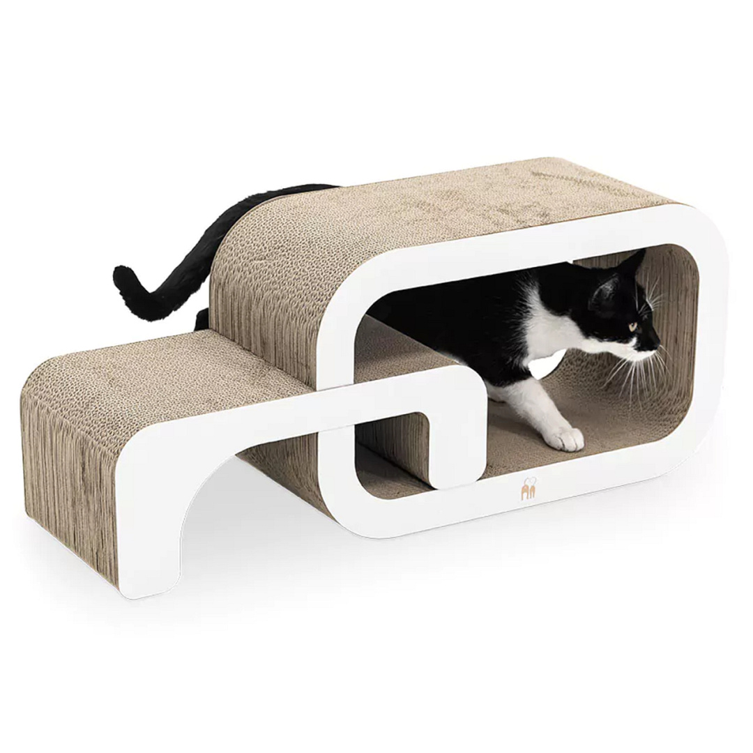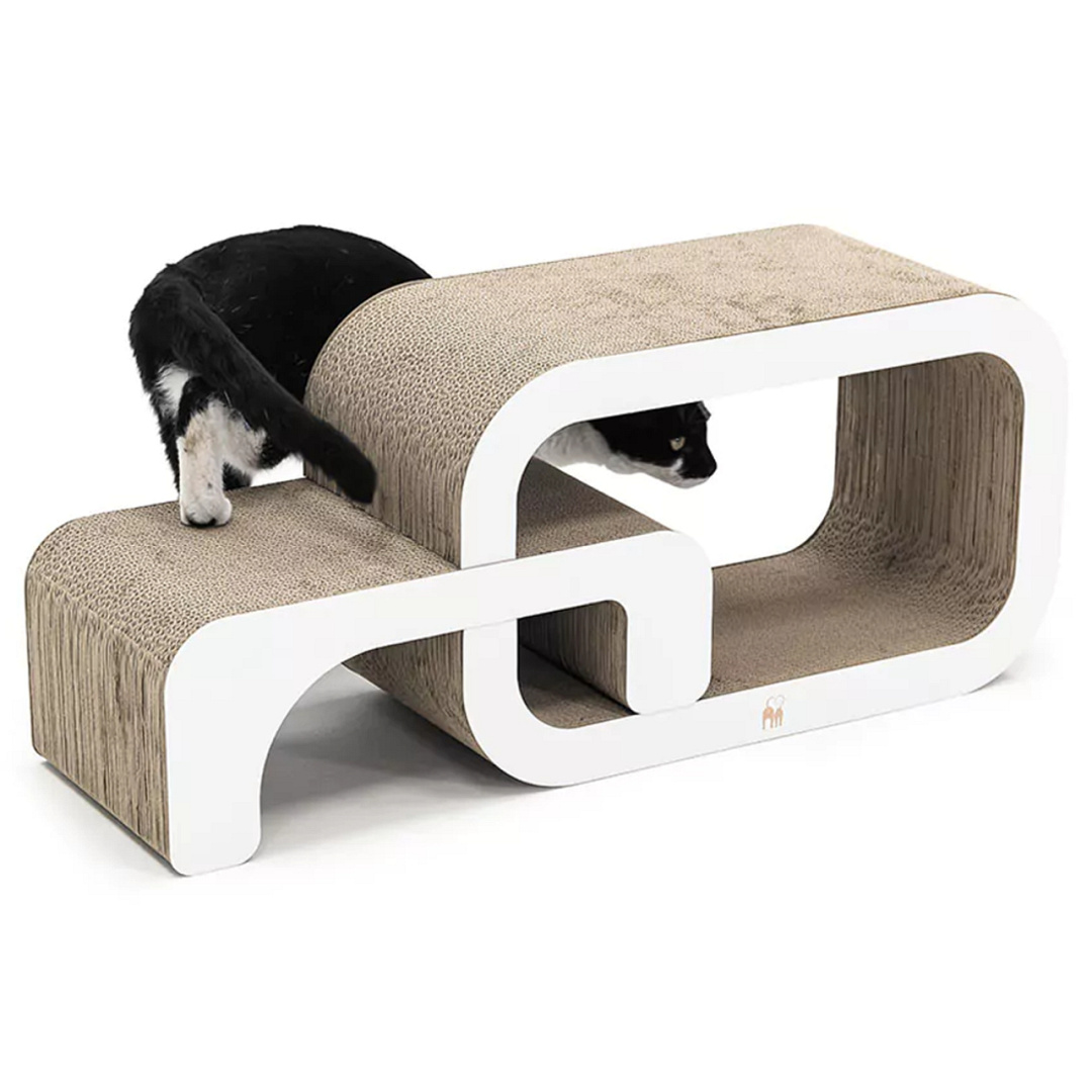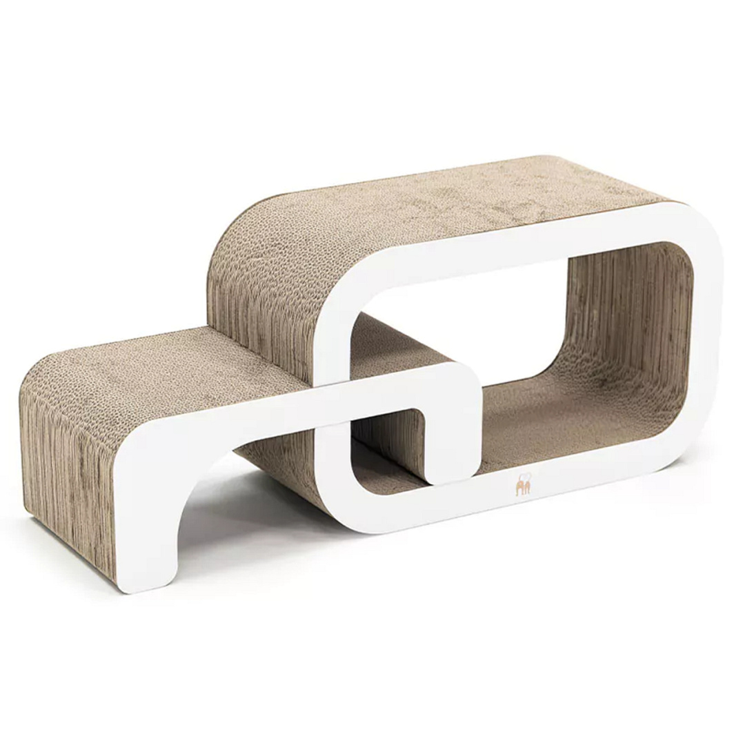 Modulair, kartonnen krabmeubel uit twee delen. Voor katten die van afwisseling houden. Afm. 55 x 24 x 33 cm.