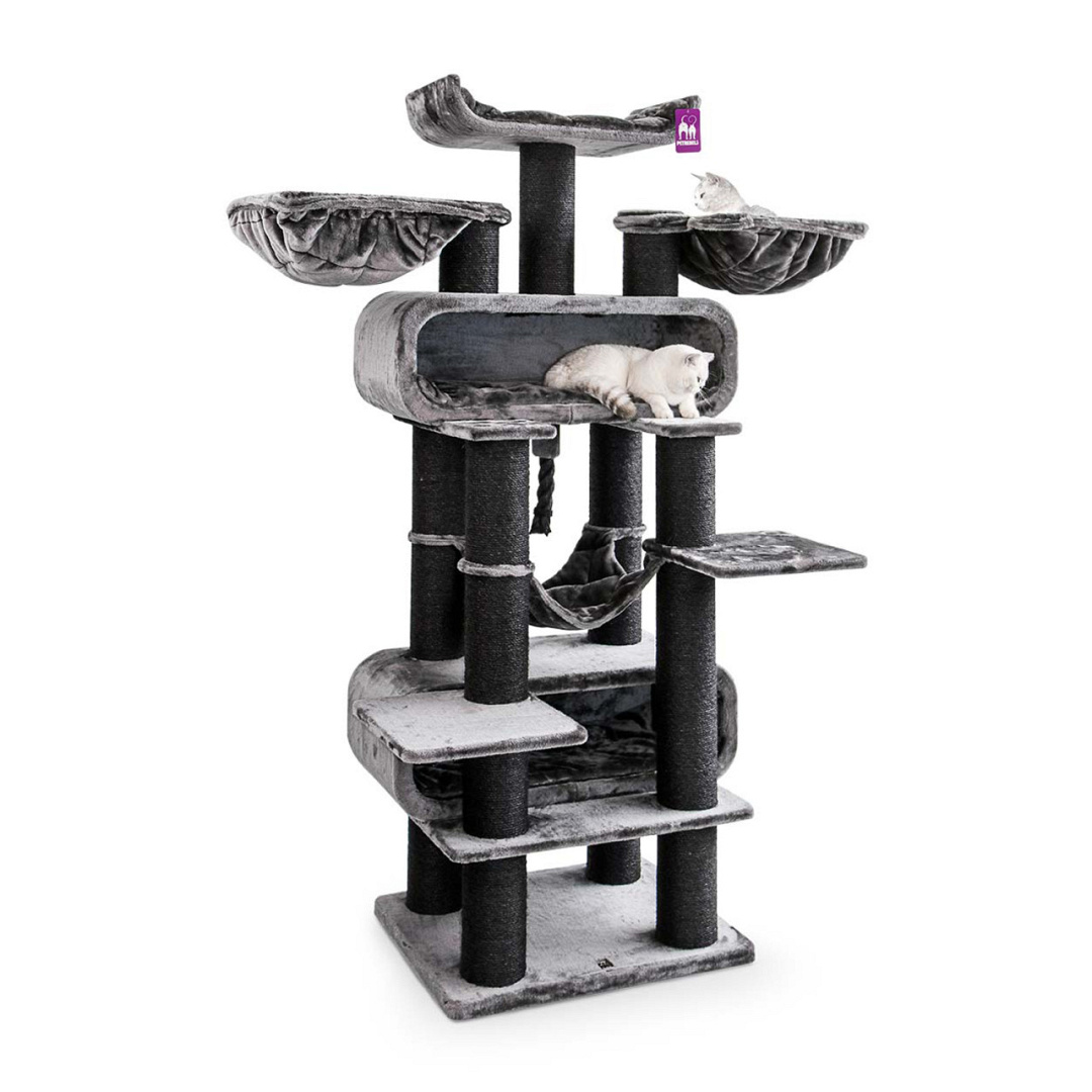Als je meerdere katten hebt is het Petrebels krabmeubel Route 210 uit de Lucky Bastards collectie is écht wat voor jou! Deze krabpaal is ongelooflijk hoog, wel 210 cm, en speciaal ontworpen voor katten die graag klimmen, krabben en hoog zitten en liggen. Want zeg nou zelf, je kunt iedereen toch het best in de gaten houden vanaf een hoge plek? Verder is deze krabpaal op alle fronten luxe afgewerkt. Met hoge kwaliteit pluche, sterke sisal en stevige manden en hangmatten. Staat deze topper straks bij jou in huis?