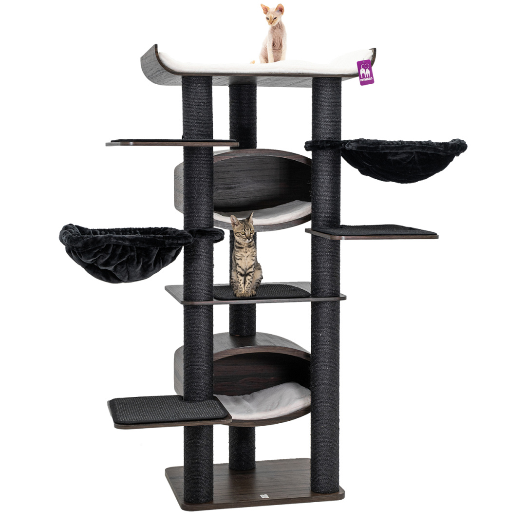 Hoog krabmeubel met meerdere heerlijke lig- en verstopplekken. Afm. 90 x 60 x 187 cm.