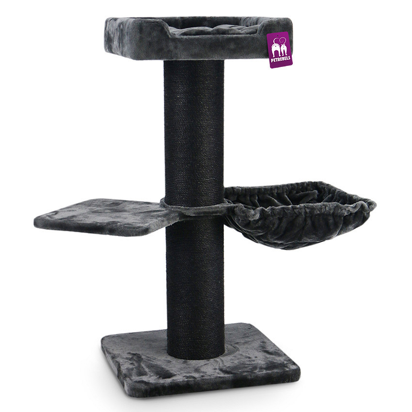 Krabpaal geschikt voor zware katten voorzien van een hangmat met zachte voering en bovenin een ruime ligplek. Afm. 60 x 60 x 117 cm.