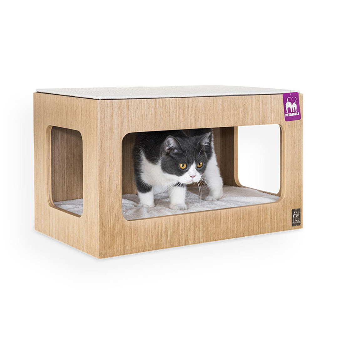 Katten zijn gek op dozen, dus dat was ons uitgangspunt toen wij Petrebels kattenmand Box 60 bedachten. Deze kattenmand hang je op aan de muur en is lekker ruim. Hier wil elke kat wel een schoonheidsslaapje in doen! En eraan krabben kan ook, want op de bovenkant ligt stevig sisaltapijt.Box 60 is onderdeel van de Wall of Rebels collectie: dat zijn prachtige producten waar katten in kunnen slapen, spelen, klimmen, overheen kunnen rennen en aan kunnen krabben. En die kun je eindeloos combineren!