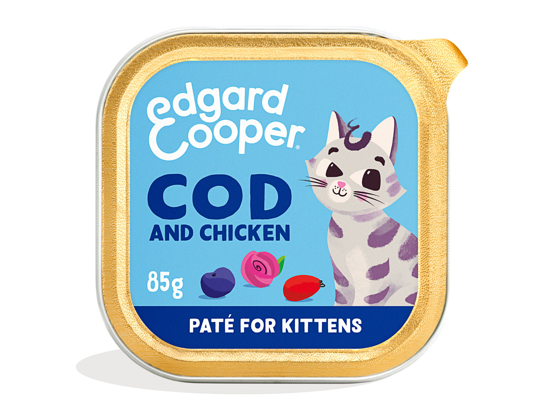 Edgard & Cooper kattenvoer Kitten MSC Kabeljauw en Kip Paté is een zijdezachte paté en een volwaardig recept met verleidelijke ingrediënten voor opgroeiende kittens, ook als ze gesteriliseerd zijn.