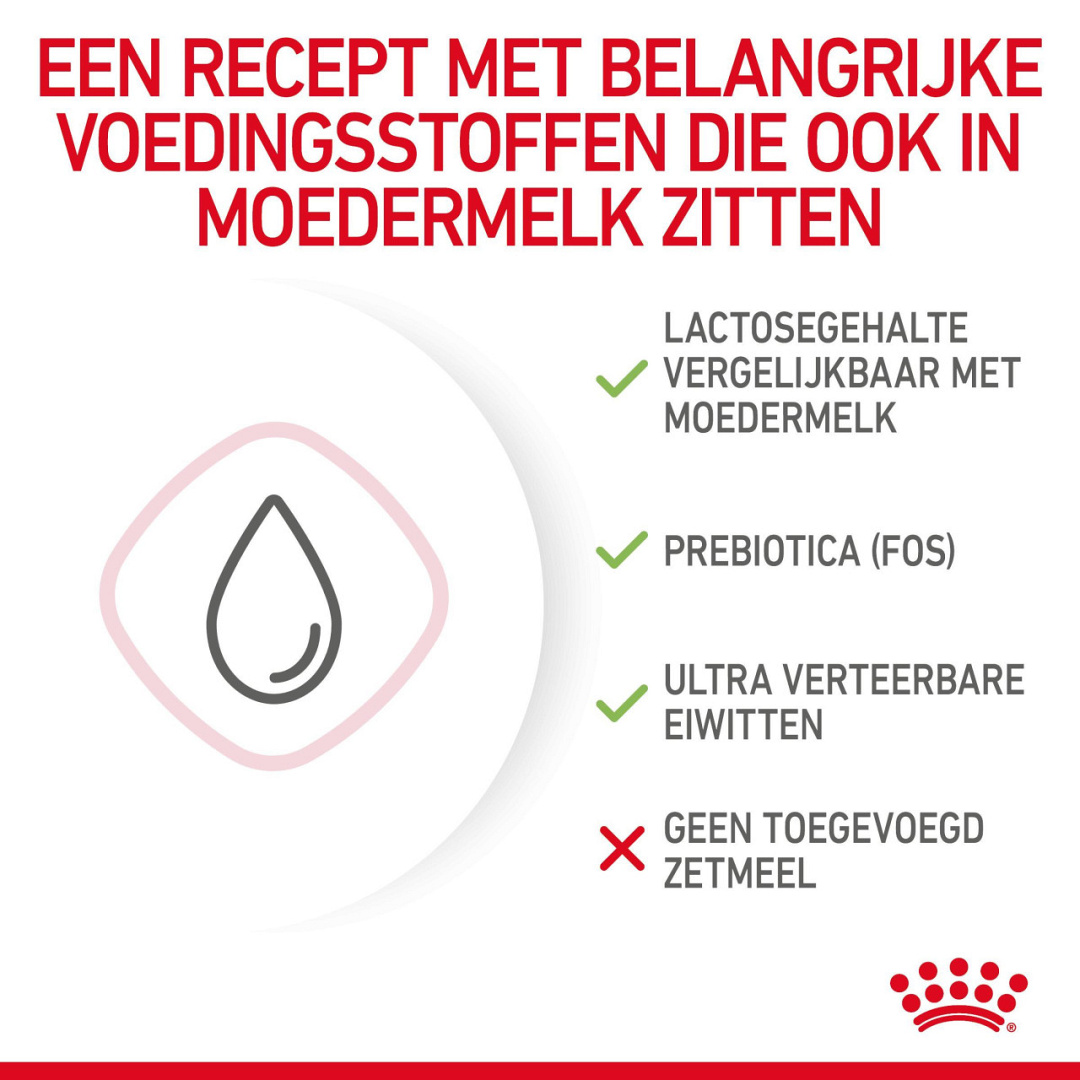 Royal Canin Babycat Milk is een uitstekend alternatief voor moedermelk, omdat het beschikt over soortgelijke eigenschappen. Dit in tegenstelling tot koemelk.