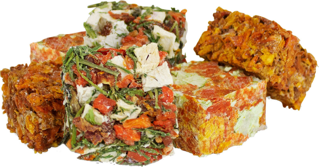 Gevarieerd tussendoortje voor knaagdieren en dwergkonijnen. De groenteblokjes bevatten waardevolle vitamines en voedingsstoffen.