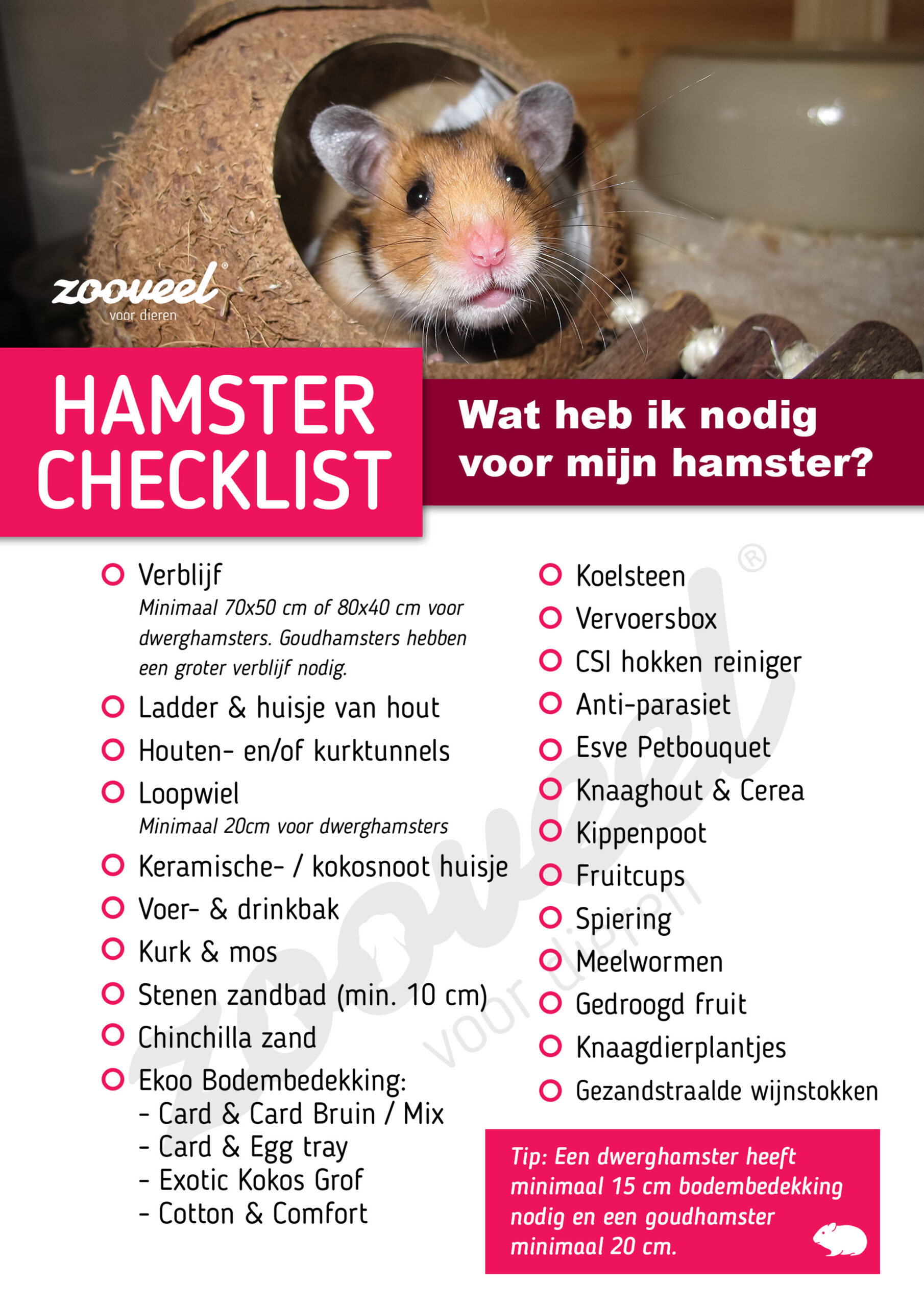 Wat heb je nou eigenlijk allemaal nodig? Om ervoor te zorgen dat je er helemaal klaar voor bent, hebben wij een knaagdieren checklist opgesteld. Van een geschikt hok tot bodembedekking en gezonde snacks, we helpen je graag om het meest geschikte materiaal te vinden voor jouw nieuwe huisdier. Mocht je nog andere Dieren helpen we je graag verder!