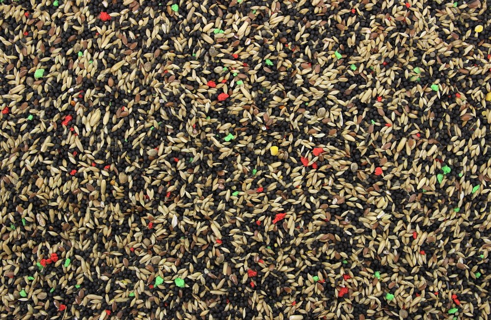 Samenstelling: Koolzaad, kanariezaad, haver, lijnzaad, hennepzaad, nigerzaad, vogelpaneermeel.